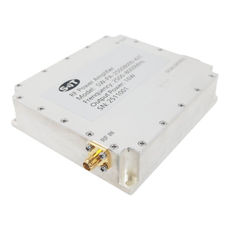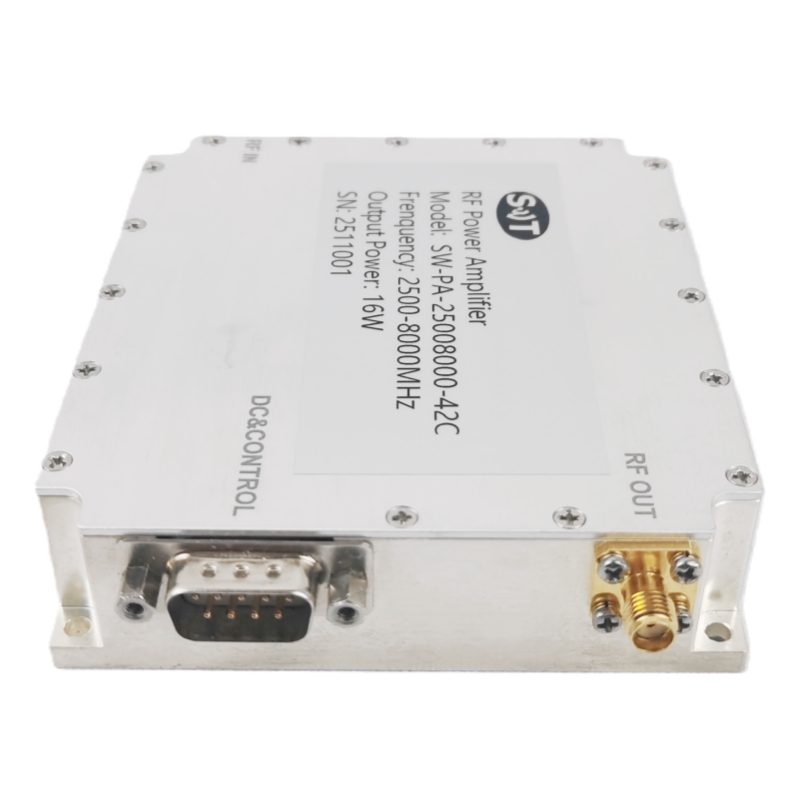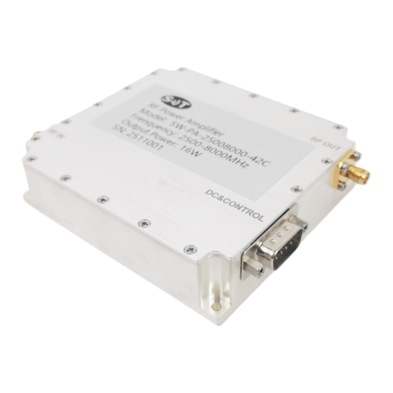 2,5 до 8 ГГц RF усилитель 15 Вт выхода высокой эффективности высокой линейности компактный дизайн для коммерческих приложений