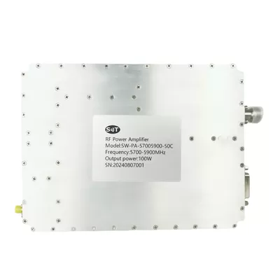 5700-5900MHz 100W RF Amplificador De Potência Tornou-se Um Componente Indispensável E Importante Em Sistemas De Comunicação Modernos Devido à Sua Alta Potência, Alto Ganho E Baixo Desempenho De Ruído. Seja Em Comunicações Sem Fio, Radar Ou Satélite, Este Produto Oferece Excelente Desempenho E Estabilidade Para Uma Ampla Gama De Aplicações.
