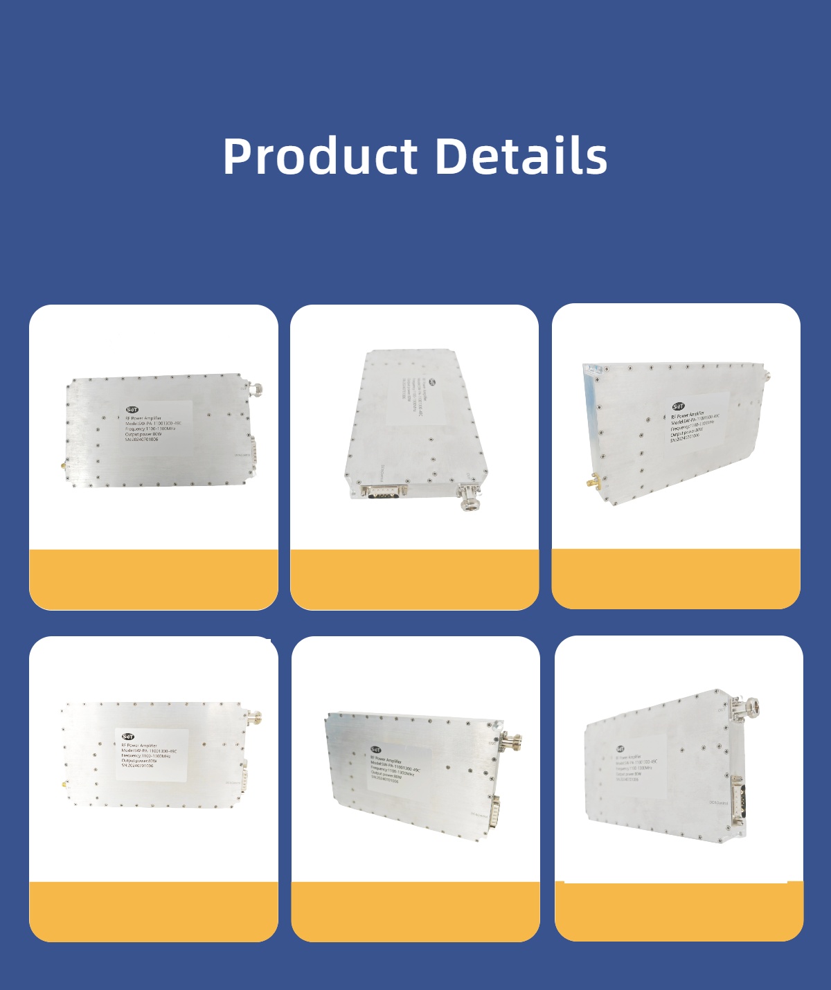 O Amplificador De Potência RF De 1100-1300MHz 80W Opera Na Faixa De Frequência De 1100 A 1300 MHz, Oferecendo Uma Potência De Saída De 80 Watts. Ele é Projetado Para Aplicações De Alto Desempenho, Incluindo Sistemas De Comunicação, Radar E Guerra Eletrônica, Onde A Amplificação Eficiente é Crítica. Este Amplificador Fornece Excelente Ganho E Estabilidade, Garantindo Desempenho Confiável Em Ambientes Exigentes. Seu Design Robusto O Torna Adequado Para Aplicações Comerciais E De Defesa, Fornecendo Potência Consistente Em Toda A Faixa De Frequência Especificada.